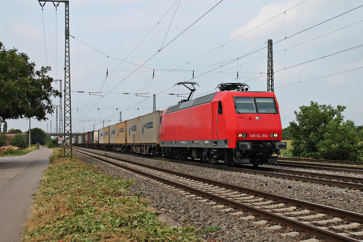 Durchfahrt am 10.08.2015 von Crossrail 145-CL 014 (145 092-3) mit einem Containerzug, den sie von Aachen West bis Muttenz transportierte, in Müllheim (Baden) in Richtung Basel.