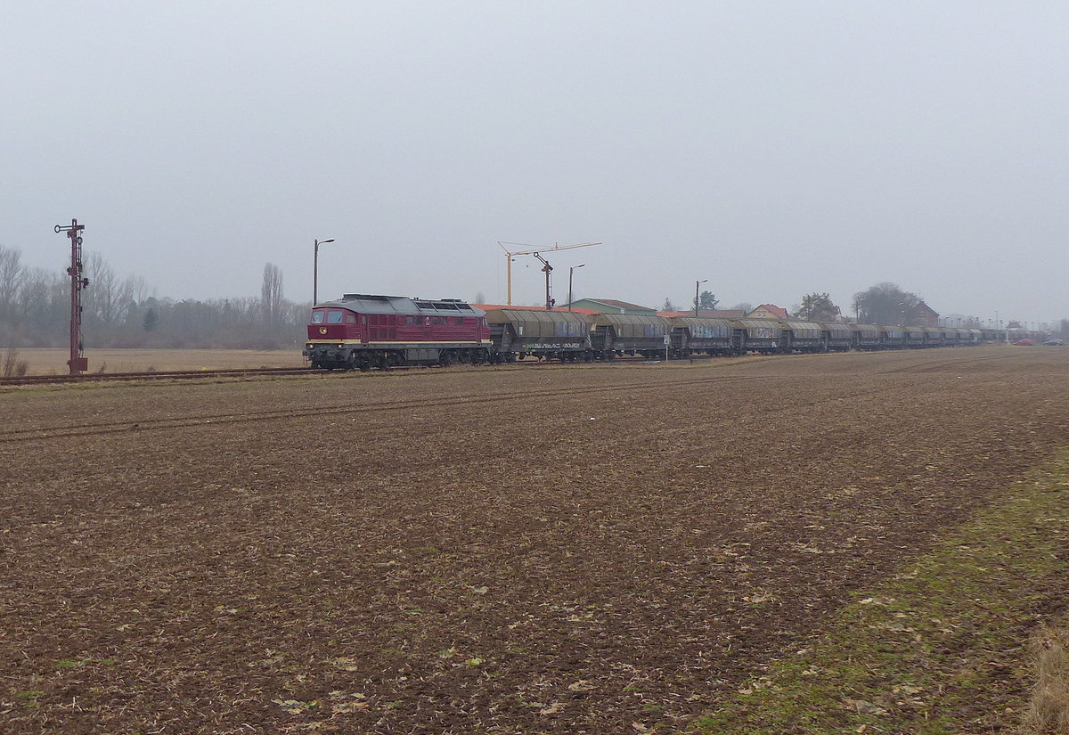 EBS 132 293-2 mit einem SBB Cargo Getreidezug von Ebeleben nach Erfurt Gbf und weiter nach Zürich, am 11.02.2017 in Kühnhausen.