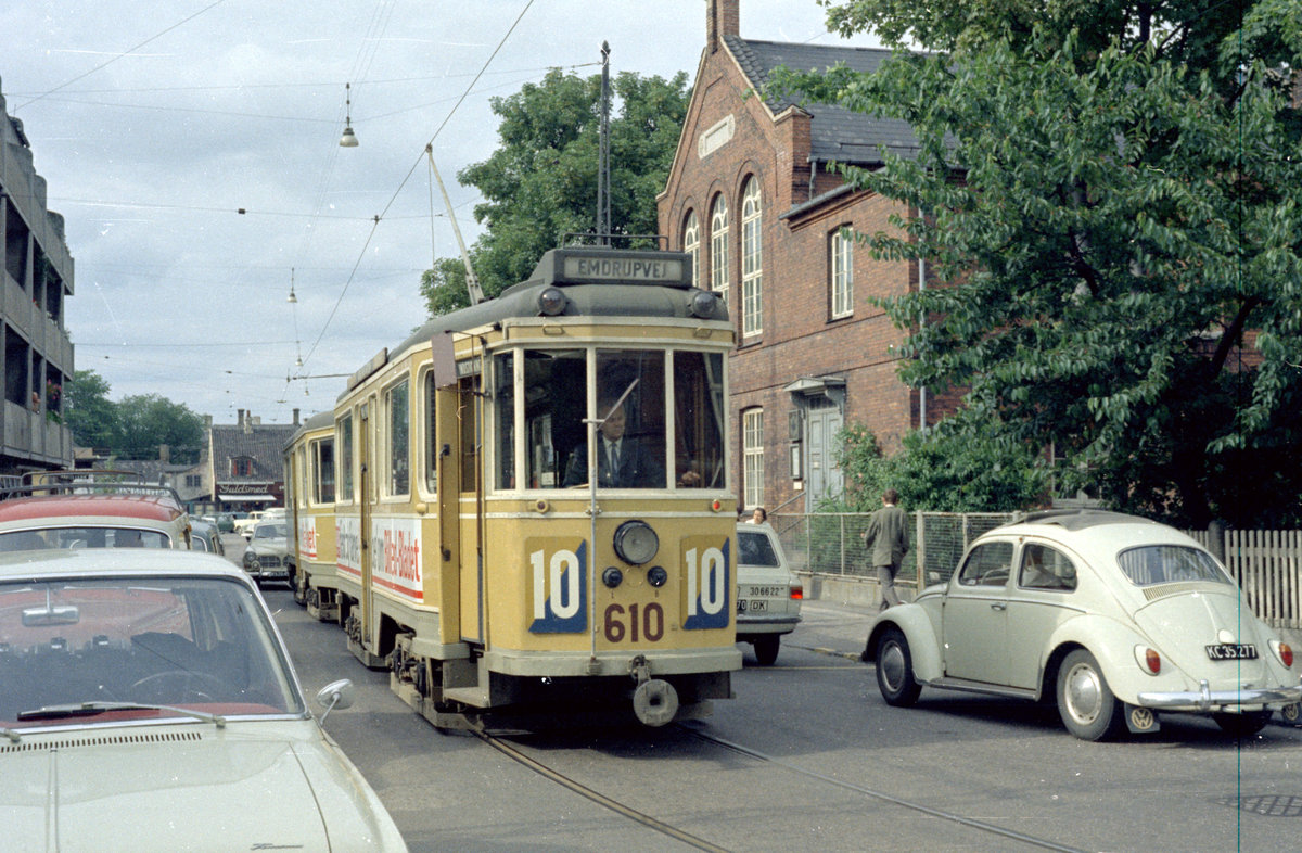 København / Kopenhagen Københavns Sporveje SL 10 (Tw 610 + Bw 15xx) Valby, Valby Tingsted im Juli 1968. - Scan von einem Farbnegativ. Film: Kodacolor X.