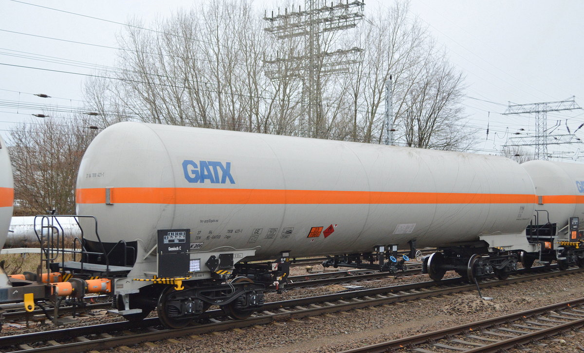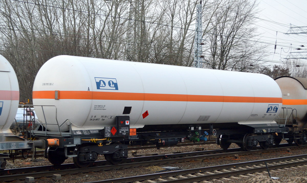 DB Cargo Deutschland AG mit "185 001-5" [NVR-Number: 91 80 6185 001-5 D-DB] und "185 352-2" [NVR-Number: 91 80 6185 352-2 D-DB] + Ganzzug Druckgaskesselwagen (Propen) am Haken am 20.12.18 Berlin-Hirschgarten.
