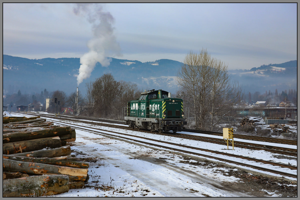 In der bereits tief stehenden Sonne konnte die BR 1142 696 mit den leeren Schlackewagen von Mistelbach nach Moosbierbaum kurz nach Hausleiten fotografisch festgehalten werden. Das Foto entstand am 18.12.2018.
