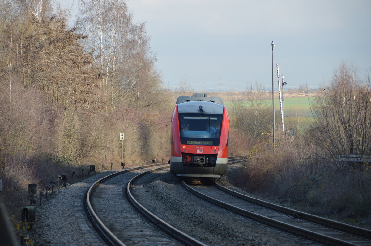Am Samstagabend ist dieser S8 Zug in Korschenbroich gen Neuss fahrend unterwegs, an dem Tag ist eingleisiger Betrieb angesagt, auf dem Richtungsgleis nach Mönchengladbach werden Kleineisen getauscht. 1.12.2018