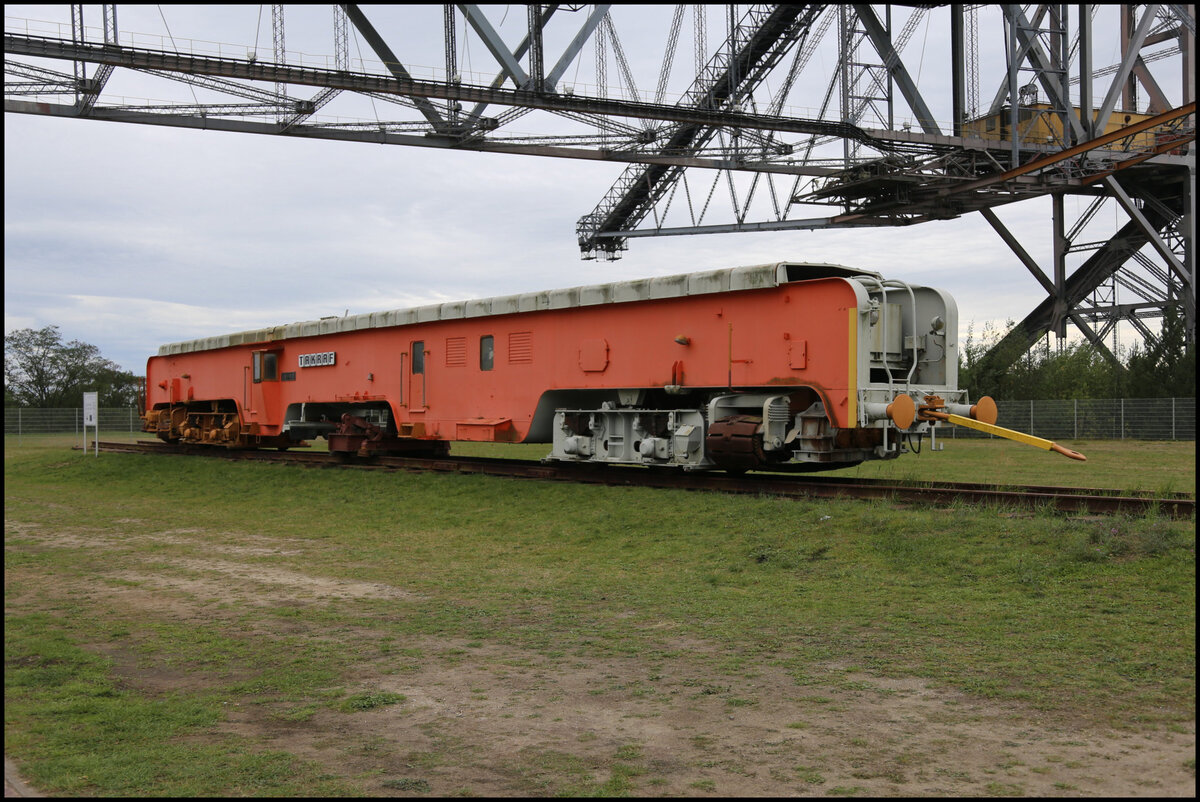 Im Besucherbergwerk Lichterfeld F 60 steht als Denkmal dieser Takraf Gleisrücker Wagen. Aufnahme am 1.10.2025.