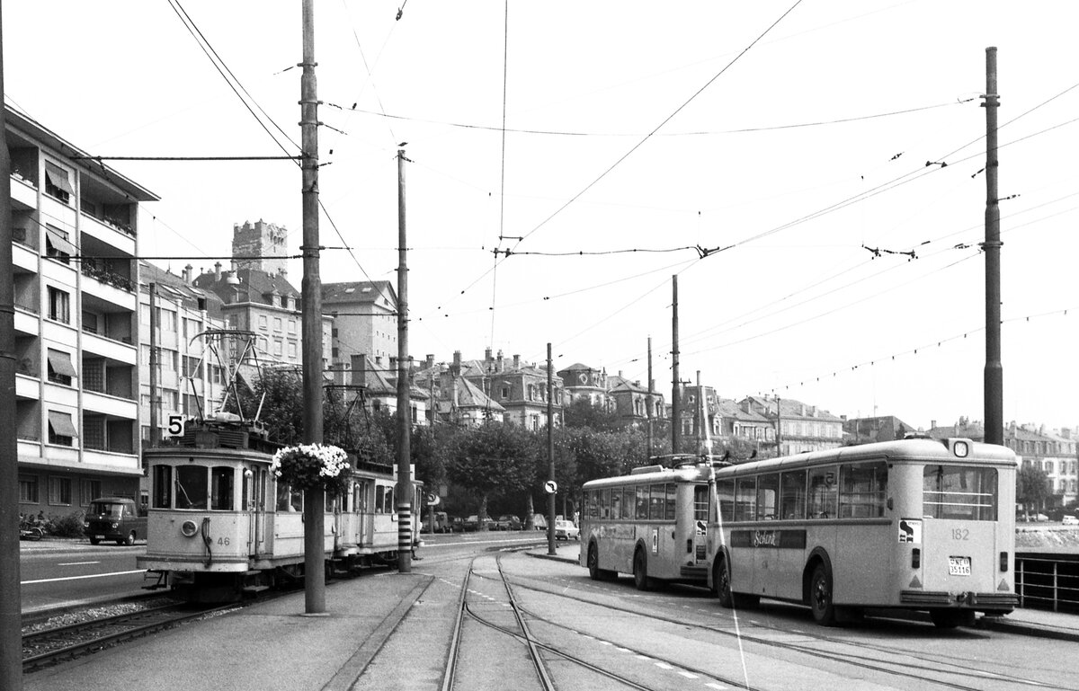 solche Trolleybus mit Anhänger wie rechts im Bild zu sehen gab es in Lausanne bis vor kurzem.