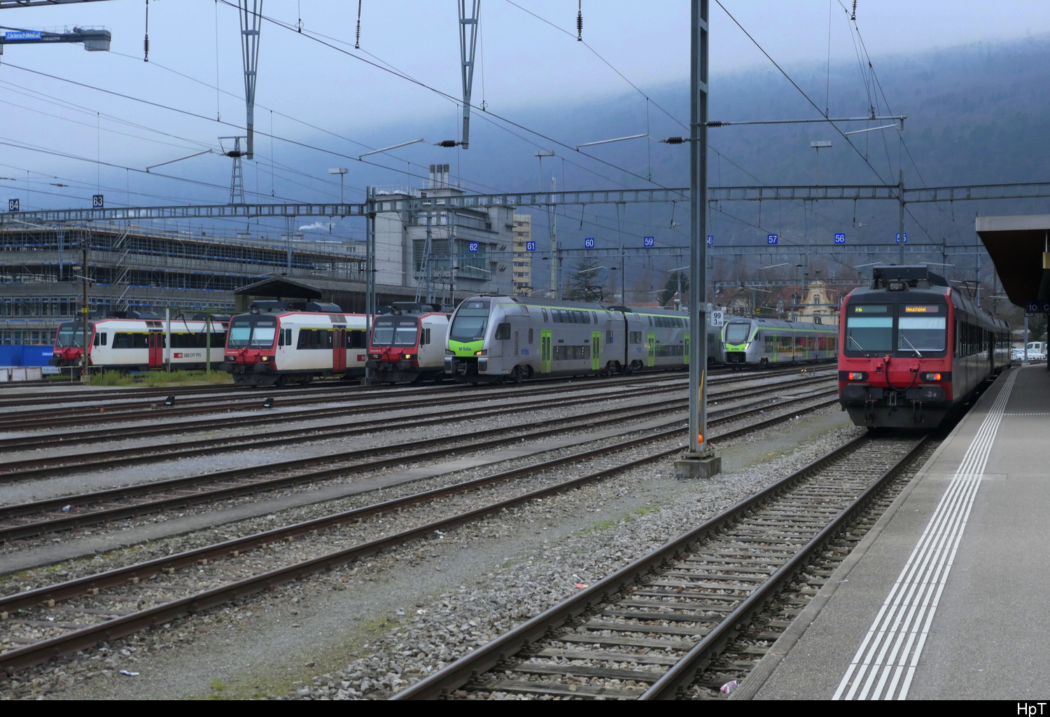 SBB- Steuerwagen ABt 50 85 39-43 823-6 am Schluss eines Regio nach Neuenburg - Yverdon im Bahnhof Biel am 29.12.2025 BLS - Triebwagen RABe 535 114 als Regio nach Langnau unterwegs in Lützelflüh am 10.12.2025 BLS - Lok 485 013 + 485 010 mit Rübenzug sowie der Triebwagen RABe 525 035 als Regio nach Büren an der Aare im Bahnhof Busswil am 29.12.2025 Belgiën