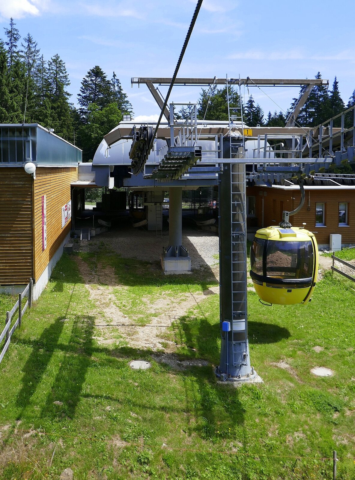 Belchenseilbahn, Blick auf die Talstation bei Einfahrt einer ...