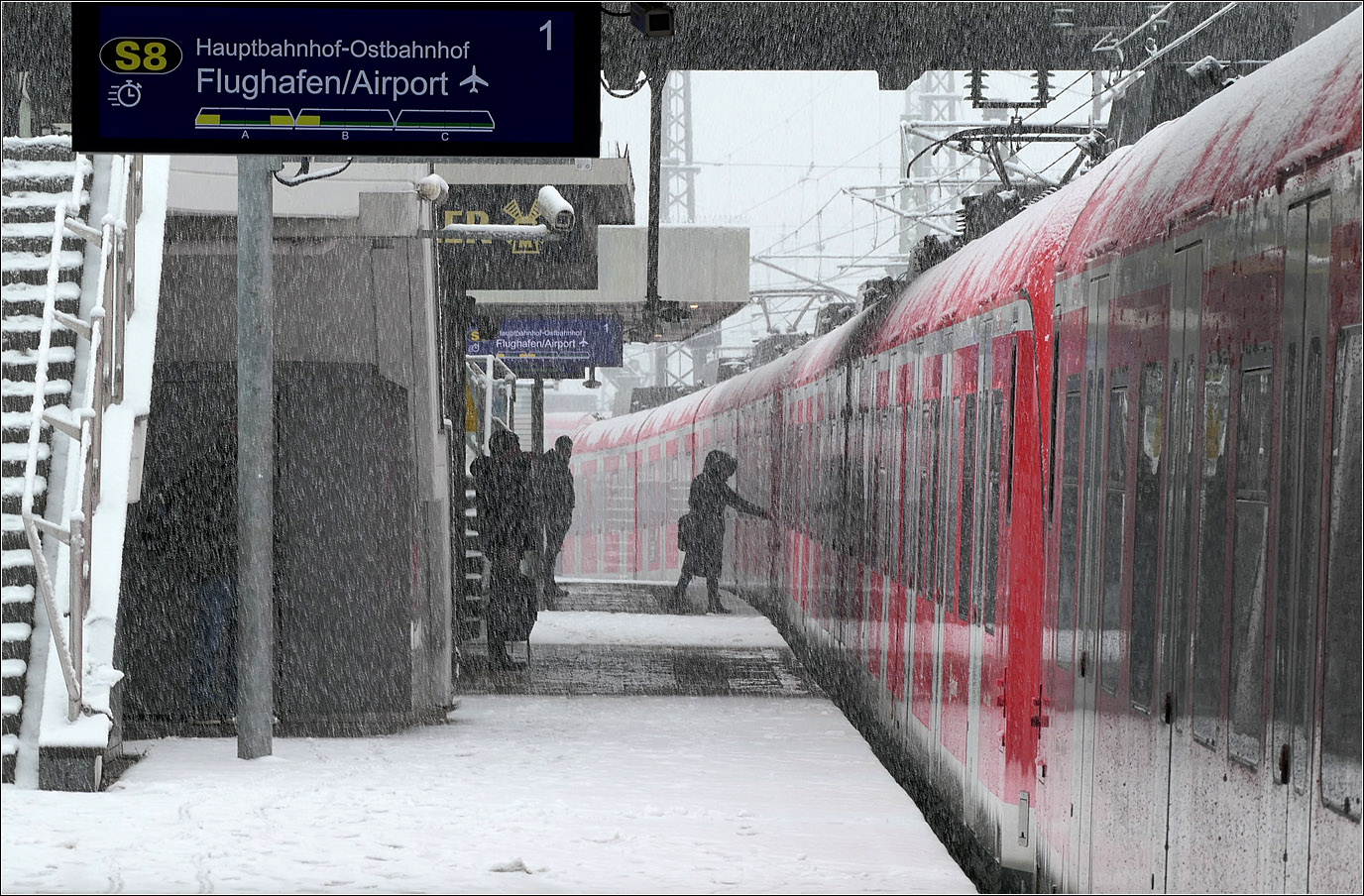 Starker Schneefall in München - Begegnung zweier S-Bahnzüge ...