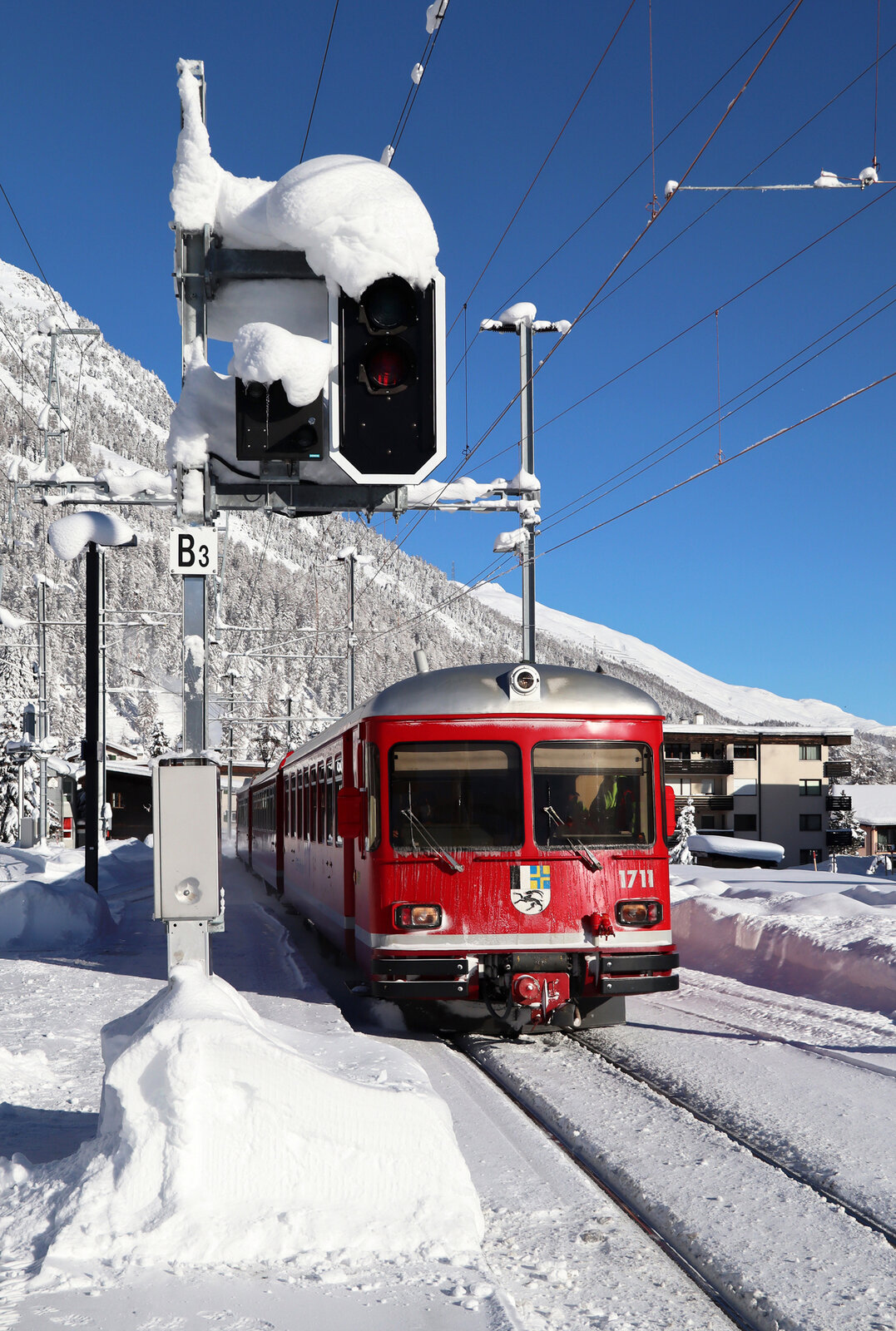 Roter Zug in herrlicher Winterlandschaft: IR von Chur ...