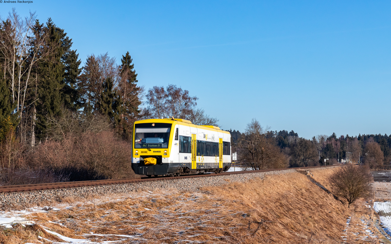 642 231 war am 02.01.2026 als RB 21986 von Johanngeorgenstadt nach Zwickau unterwegs. Gerade wurde der Bahnübergang Der Schwarzenberger Straße in Johanngeorgenstadt überquert. Michael Brunsch
