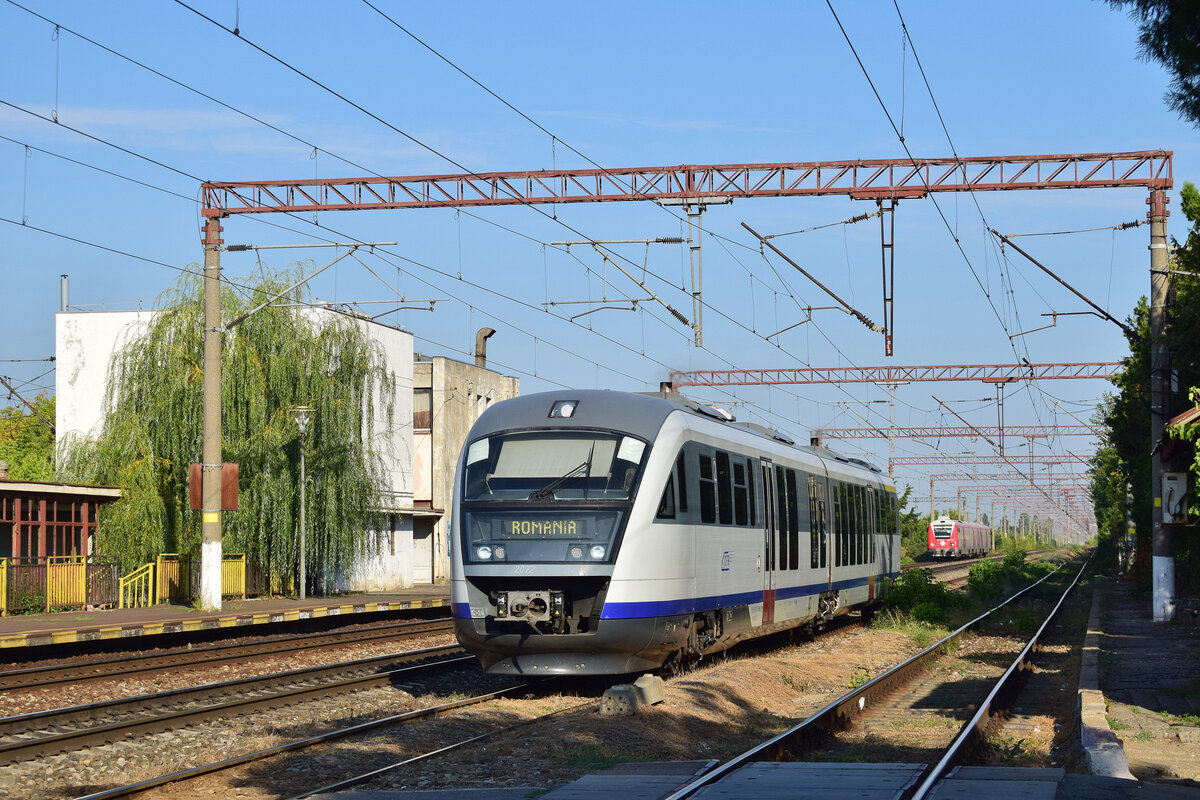 Bukarest 08.09.2025 962 072 fährt durch Bucuresti Triaj Richtung Bucuresti Nord während sich im Hintergrund 761 442-8 ebenfalls nach Bucuresti Nord nähert. Das Bild wurde vom Bahnsteig aufgenommen.