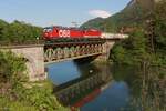 Immer wieder schön: Der "Energiecontainer" vor einem Containerzug.