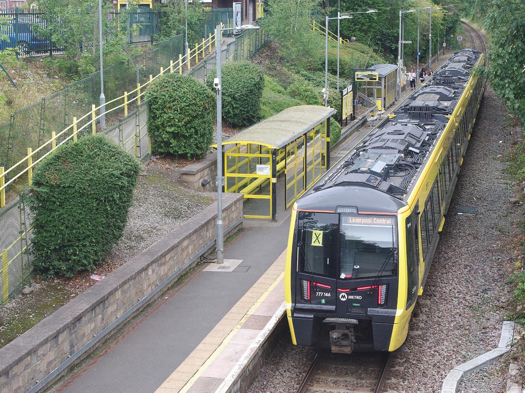 Kirkby, Blick von der Fußgängerbrücke, Merseyrail Class 777/1 ...