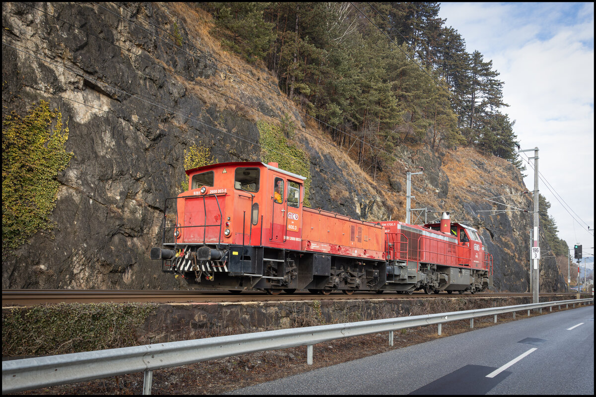 Ab in den Norden auf der Südbahn für GKB DH 600.3 . Aufgrund nicht vorhandener Zugsicherung im Schlepp von DH 1700.1 . 26.1.2026 bei Stübing Eine 'Groß' Reise für eine 'Kleine'  Lok .    GKB DH 600.3 am 26.Jänner 2026 im Schlepp von DH1700.1 bei Stübing Be 6/8 Flexity 5032, auf der wegen einer Baustelle umgeleiteten Linie 3, verlässt am 26.01.2026 die Haltestelle Brausebad. Aufnahme Basel. Doppeltraktion, mit den Be 4/4 487 und 497 zusammen mit dem B4S 1501, auf der Linie 2, wartet am 19.01.2026 in der Schlaufe beim Eglisee. Aufnahme Basel. Be 6/8 Flexity 5011 mit der Werbung für Pferdeanlässe in Basel, auf der Linie 3, verlässt am 06.10.2025 die Endstation in Birsfelden. Be 6/8 Combino 318, auf der Linie 14, fährt am 12.12.2025 zur Haltestelle Lachmatt. Aufnahme Pratteln. Be 6/10 Tango 176, auf der Linie 10, fährt am 01.11.2025 zur Haltestelle ZOO Basel. Aufnahme Basel. Be 6/8 Flexity 5022 mit der Werbung für die Zürich Versicherung, auf der Linie 6, überquert am 11.11.2025die Mittlere Rheinbrücke. Aufnahme Basel. Nex 46420 mit 363 036 bei Nebanice mit einem Autozug gen Cheb. Aufgenommen bei etwas Winter am 22.01.2026