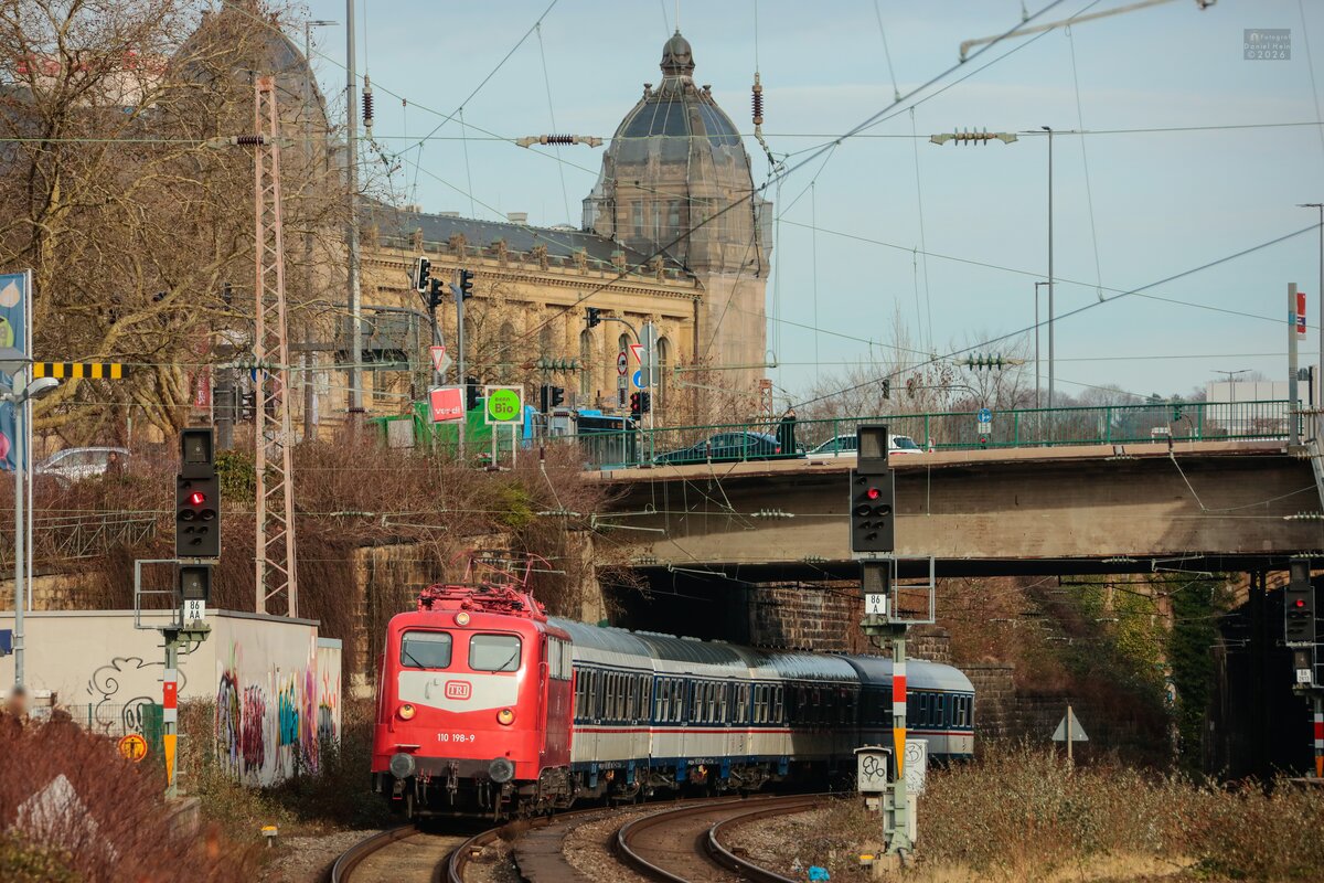 TRI 110 198-9 mit TRI-Wagenüberführung in Wuppertal, Januar ...