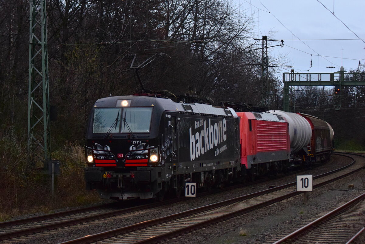 193 318 Backbone fährt mit 189 027 und ...