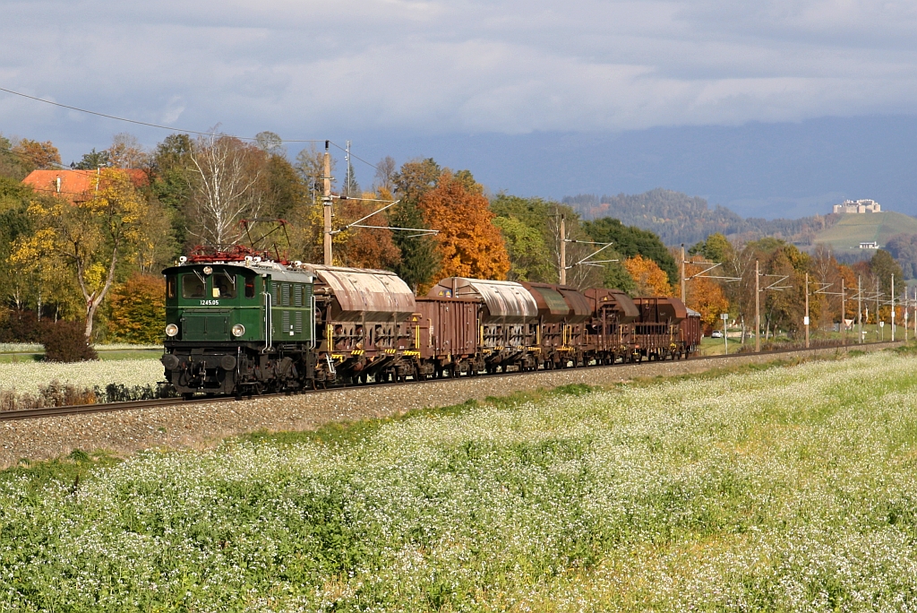 NBIK 1245.05 am 25.Oktober 2020 vor dem SGAG 14796 (Villach Hbf.-Ostbf. - St. Veit an der Glan-Westbf.) auf der Rudolfsbahn beim Strecken-Km 332,8. Karl Seltenhammer