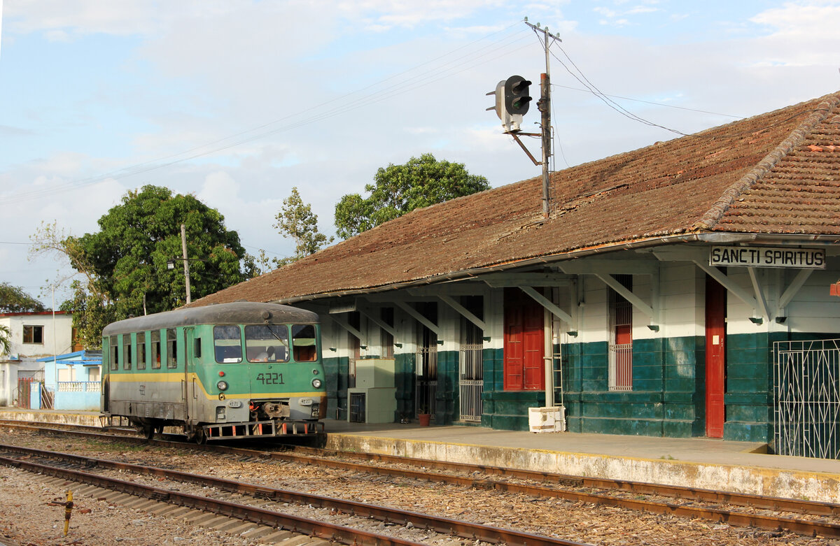 Berlin 28.09.2024 Nicht mehr gut lesbar, aber interessant: Anschrift am Dieseltriebwagen 4221. Sancti Spiritus, 17.02.2017 Das Eisenbahner-Oldie-Herz springt höher! Ein alter ex DDR-Schienenbus mit der Nr. 4221 in der in Kuba üblichen Farbgebung ist in Sancti Spiritus eingefahren. Für alle drei Gleise (der Fotograf steht hinter dem dritten Gleis) ist in be ... Freier Blick unter der Lok hindurch: Diesellok 34018 wird wohl nicht so schnell wieder in den Einsatz kommen, die Achsen fehlen. Trinidad, 16.02.2017 Währenddem ich die Dampflok Nr. 1552 fotografierte, fuhr ein anderer Oldie ins Bild. Trinidad, 16.02.2017 Dampflok 1590 (Baldwin 2-8-0?) hat ihr Lebensende wohl auch erreicht. Trinidad, 16.02.2026 Farbenprächtig: Dampflok 1432 wartet in Trinidad wohl auf die Verschrottung. Trinidad, 16.02.2017 HLB Alstom Coradia Continental 1440 168-8 (ET 168) am 02.03.26 in Maintal Ost