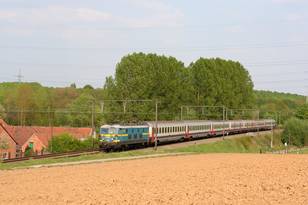 Belgiën Lok 2314 von SNCB zieht einem Personenzug, im ...