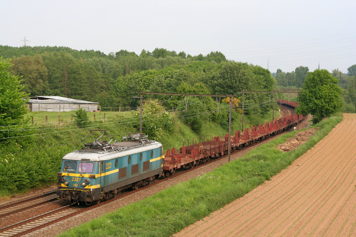 Lok 2321 von SNCB zieht einem leerem Stahlzug Clabecq - Gent, im Ternat