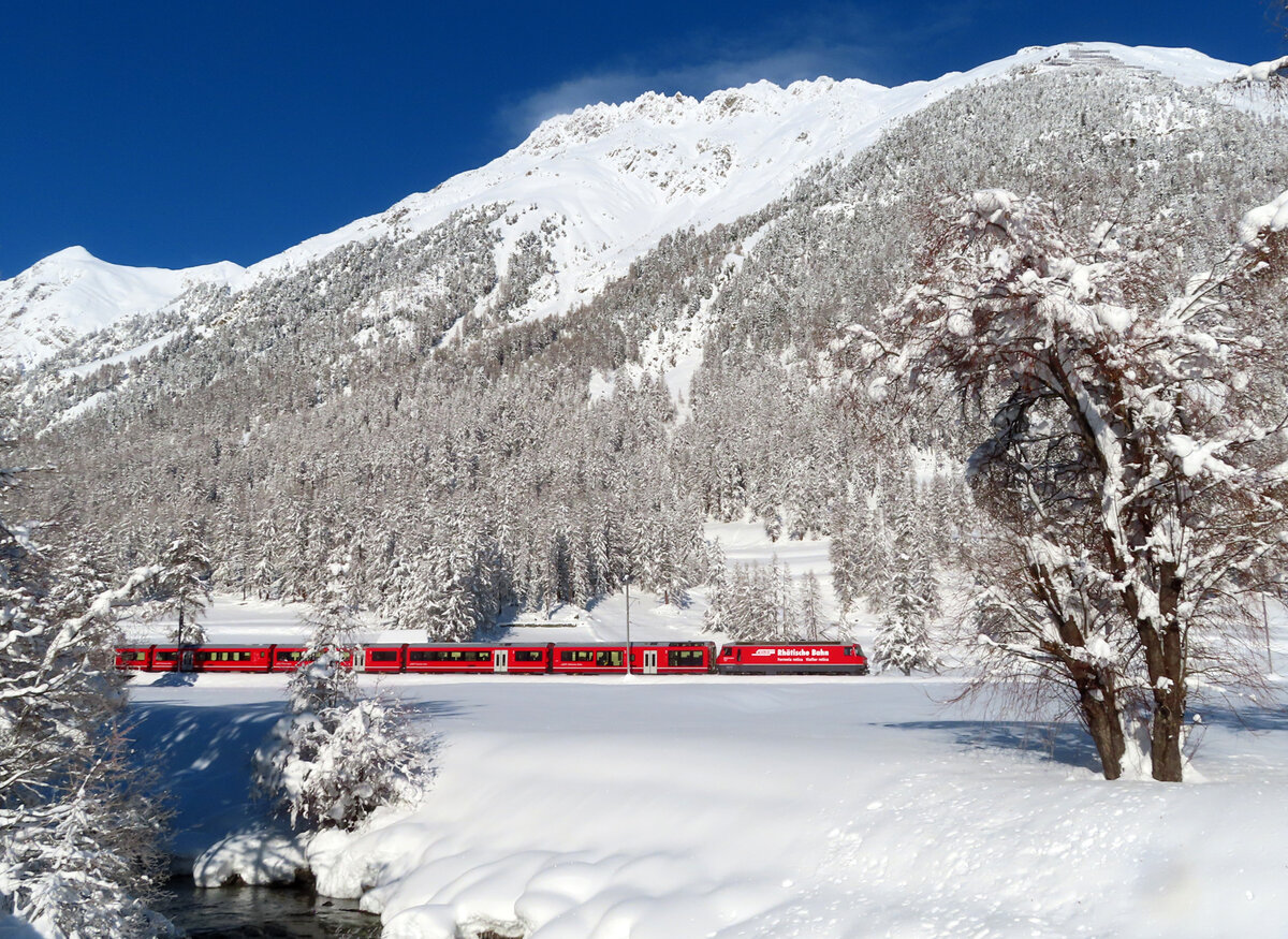 Roter Zug in herrlicher Winterlandschaft: IR von Chur ...
