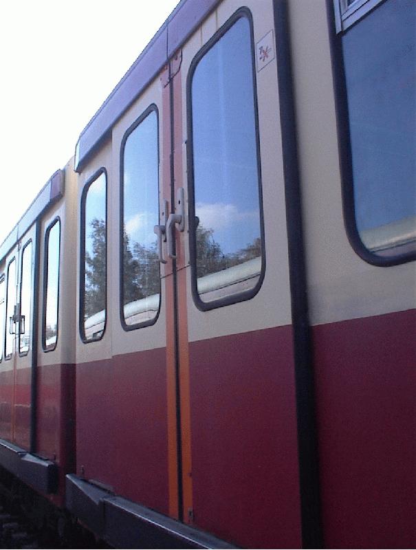 Zwischen Bau des Prototypzuges und Bau der 485er Serie verging ein Jahrzeht, denn das VEB LEW Hennigsdorf hatte einen anderen Großauftrag zu bearbeiten. Zu sehen ist diese zeitliche Differenz u.a. an den Türen, die damals noch mit Griffen, später glücklicherweise mit Druckknöpfen ausgestattet wurden. 12.10.02 Schöneweide