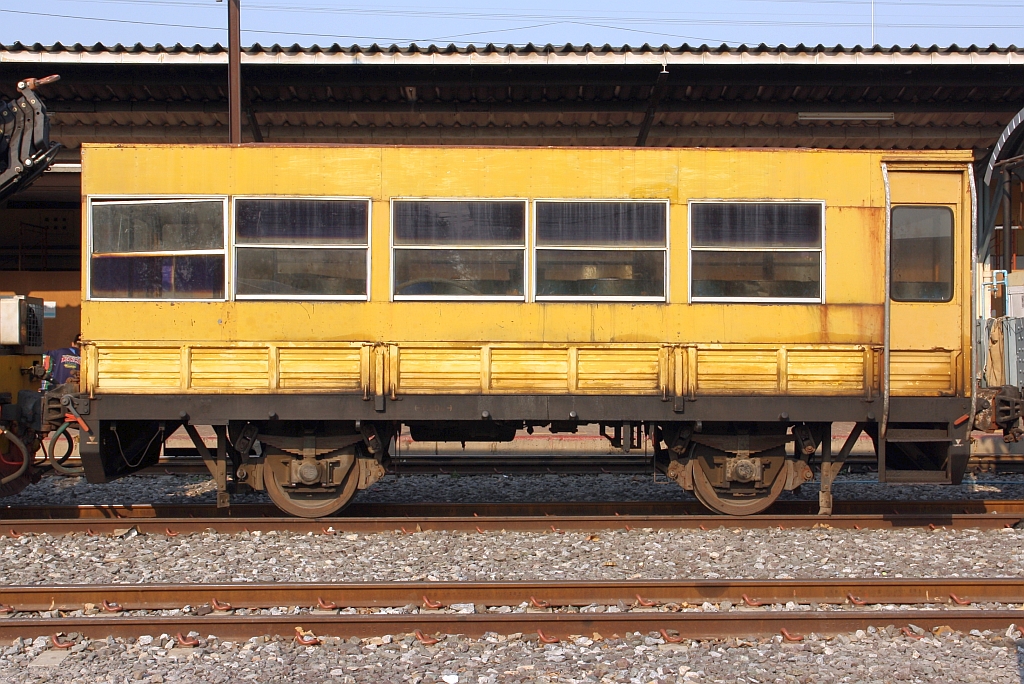 Nummernloser Bauzugwagen (Geismar Type R10) am 30.März 2023 in der Nakhon Sawan Station.