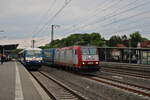 Railpool (Lineas) 186 510 rollt in den Bahnhof Bad Bentheim ein, während gerade der Systemwechsel vom deutschem auf das niederländische Netz erfolgt.
