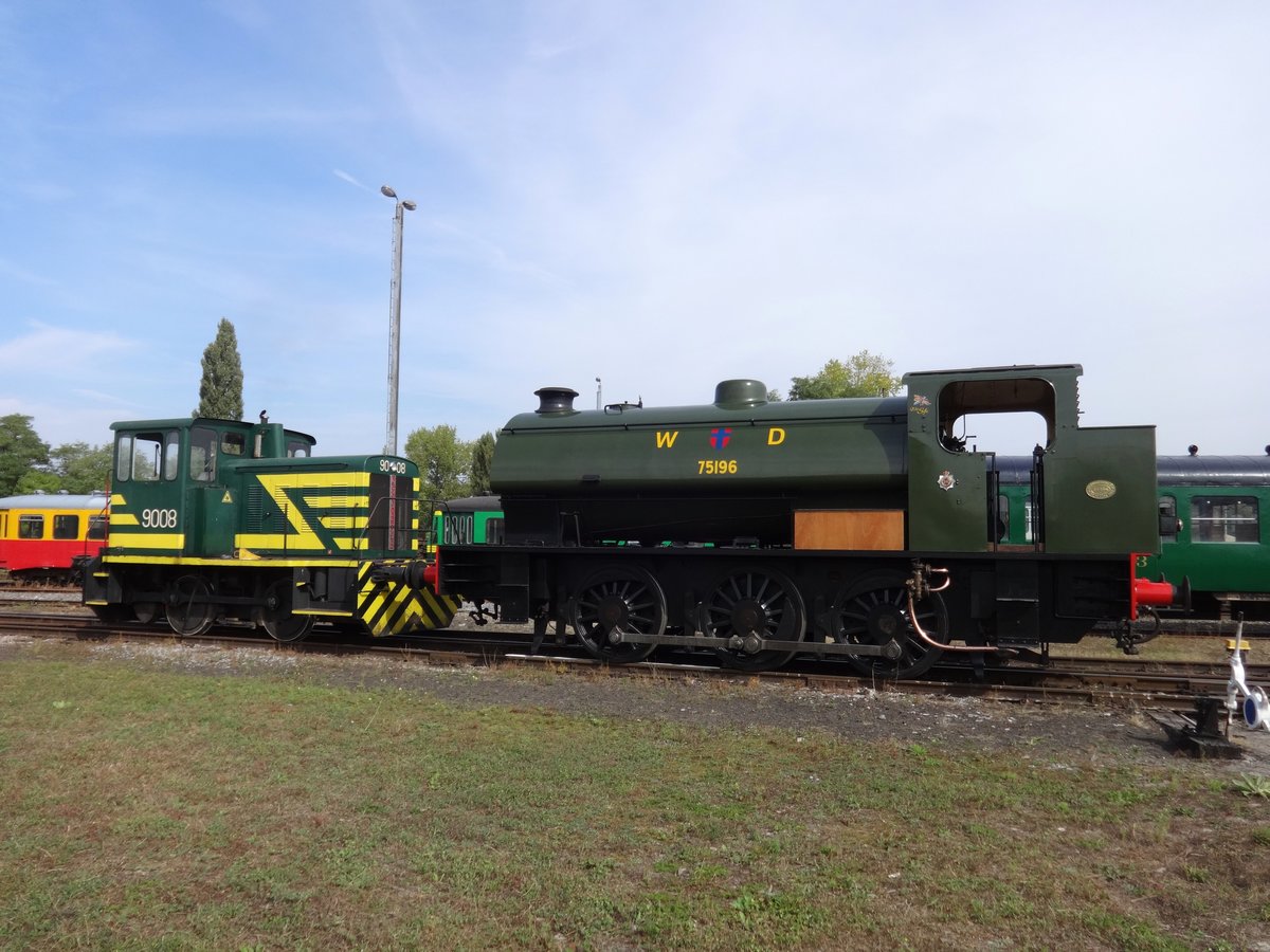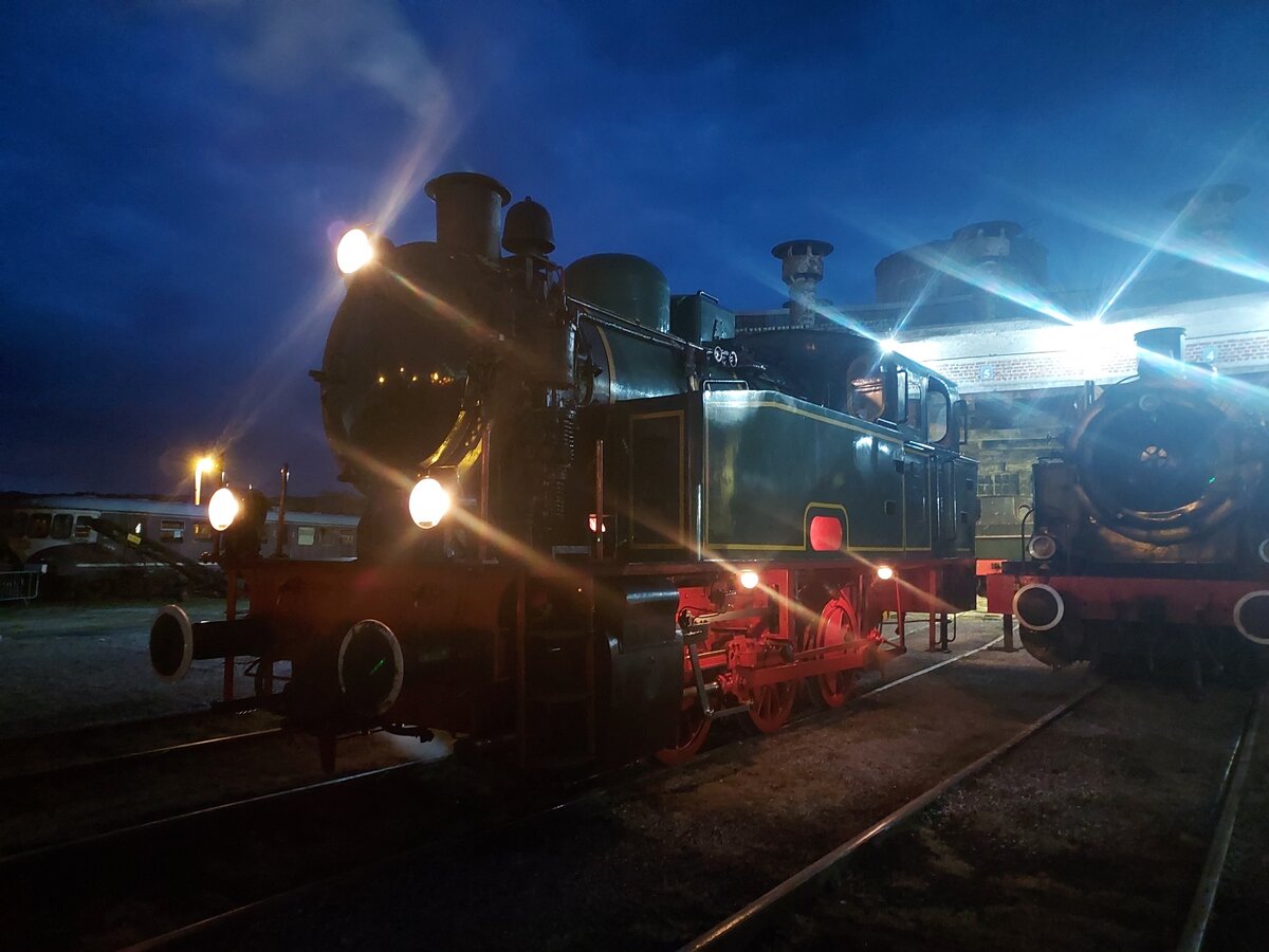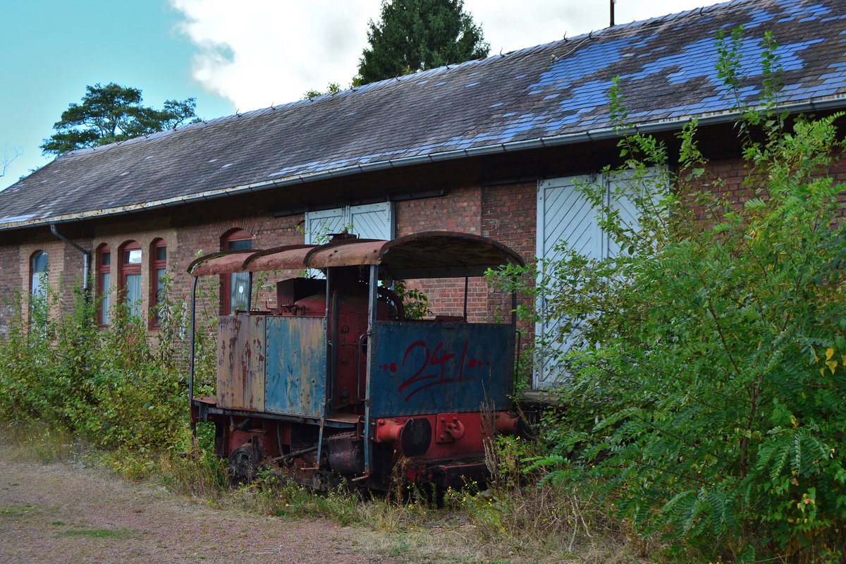 Eine Tramdampflok von Cocerrill im ehemaligen Bahnhof Raeren der Vennbahn.