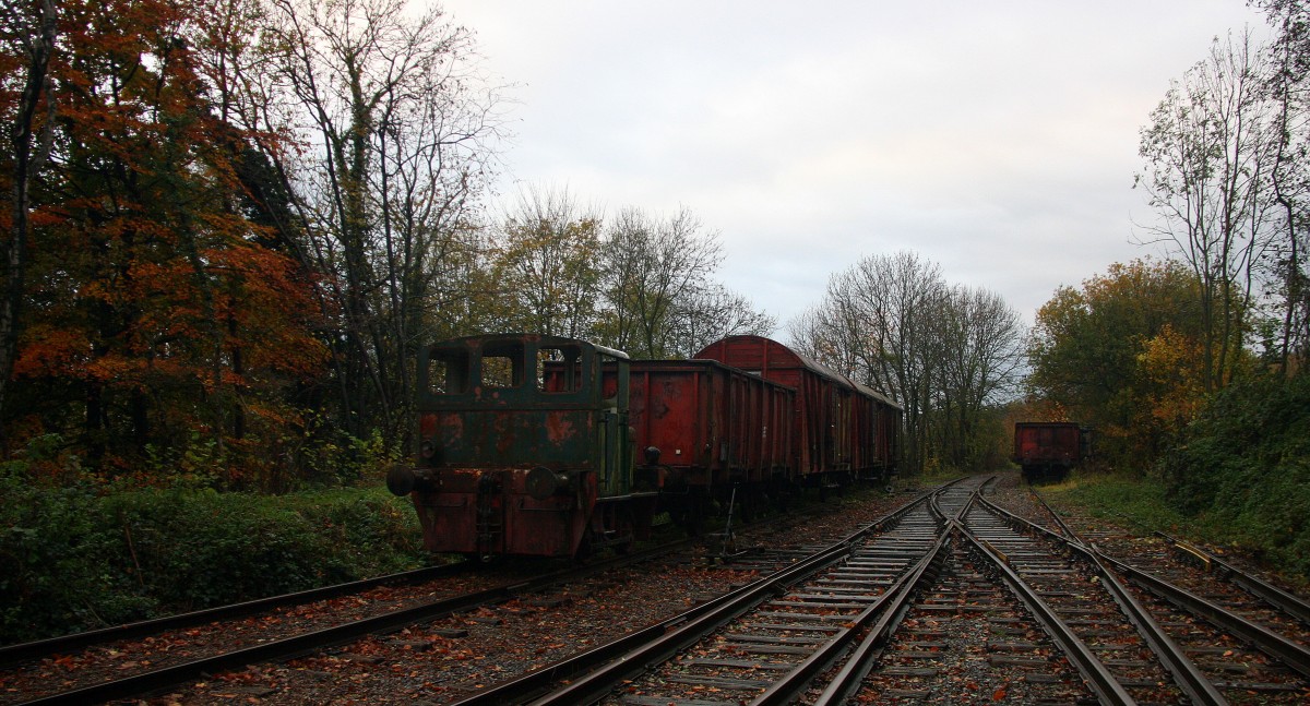 Eine alte rangierlok steht abgestellt in Hombourg(B) bei regnerischen Novemberwetter am Nachmittag vom 16.11.2014.