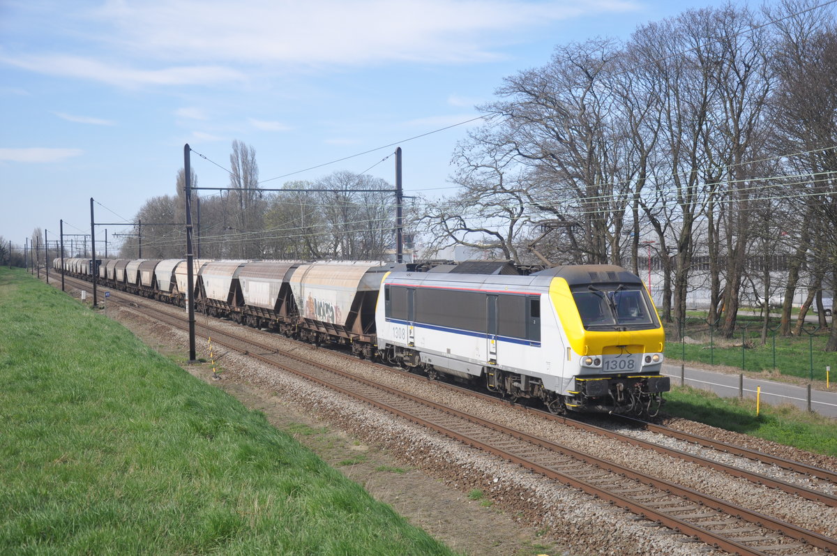 NMBS hle 1308 mit Getreidezug aufgenommen 25/03/2017 am Leemputtelaarbaan Deurne-Antwerpen
