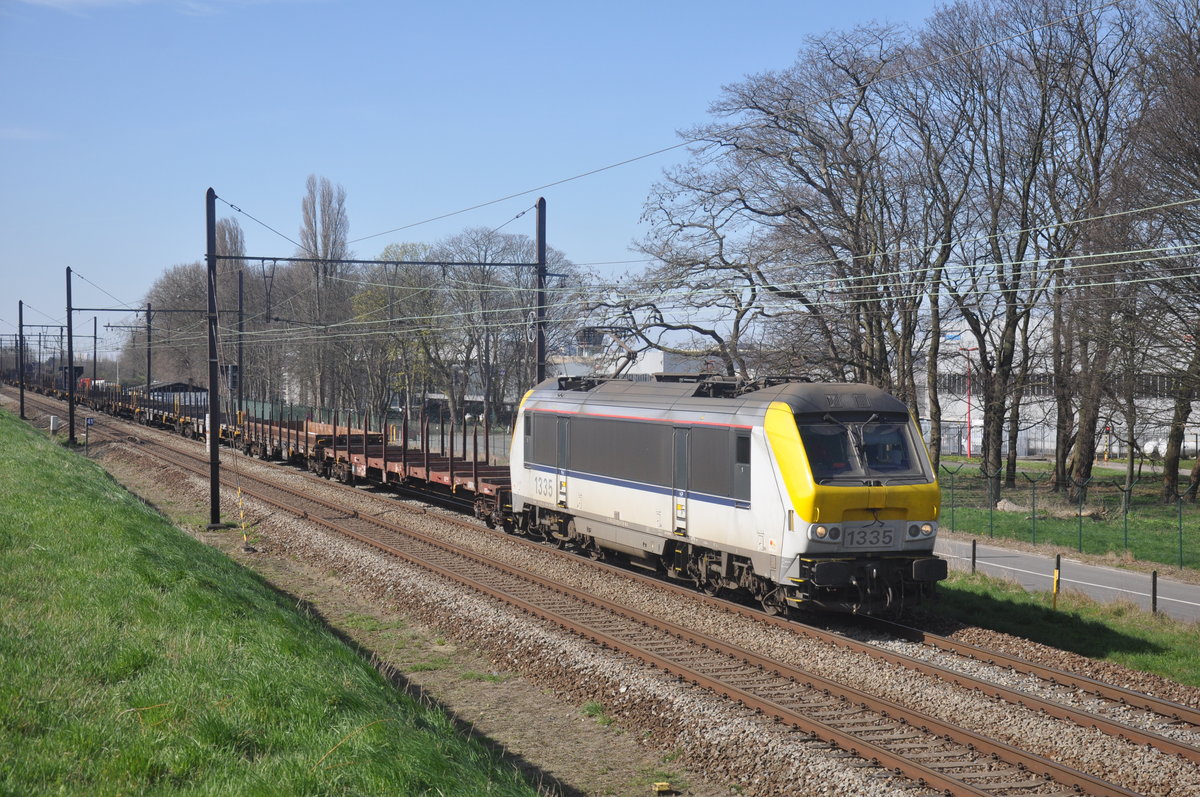 NMBS hle 1335 mit Rungenwagen aufgenommen 25/03/2017 am Leemputtelaarbaan Deurne-Antwerpen