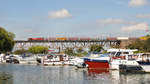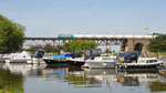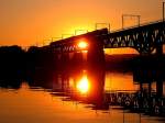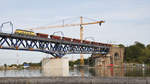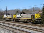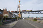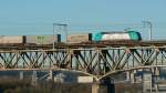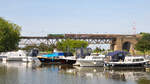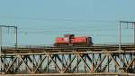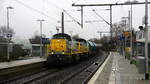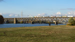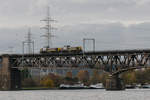 HLE 1322 mit den beiden Dieselloks 7814 und 7859 sowie einem Coilzug am Haken rollt langsam über die Maasbrücke in Visé Richtung Kinkempois. Aufnahme vom 10/05/2017.
