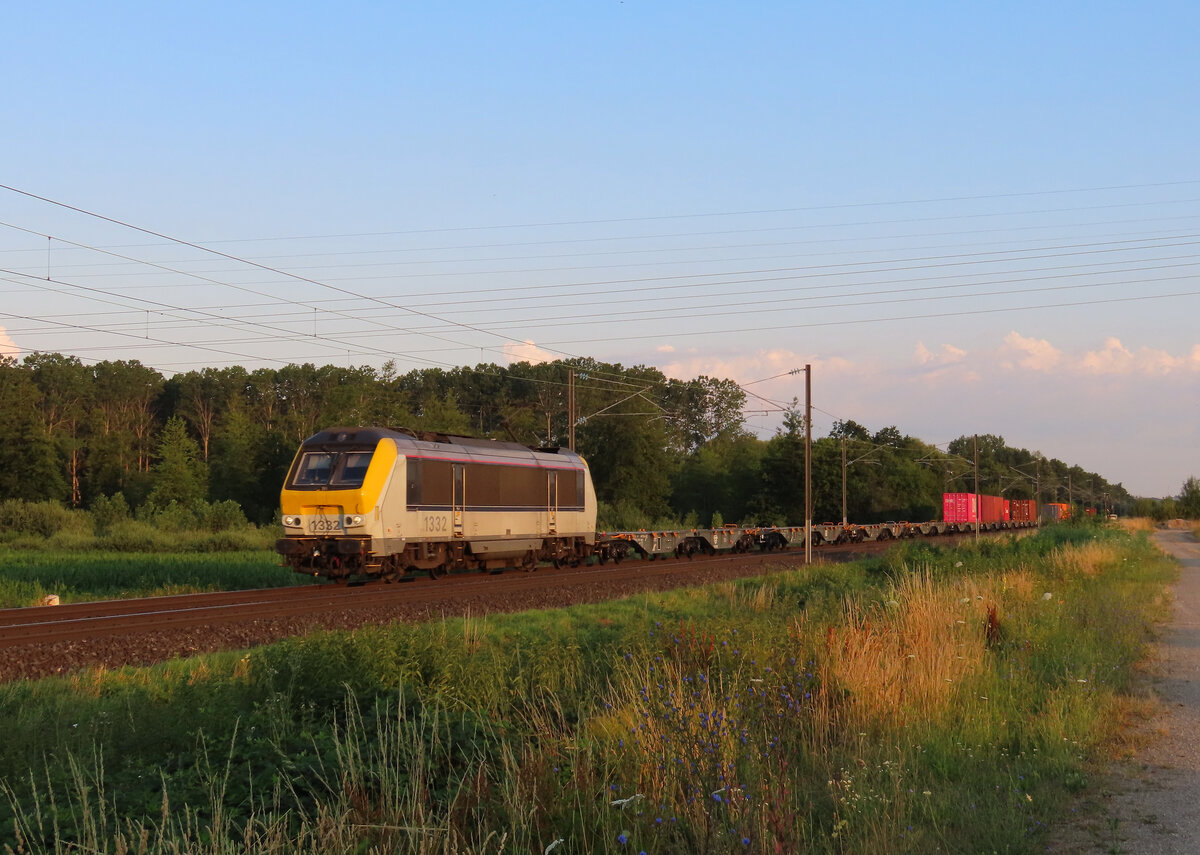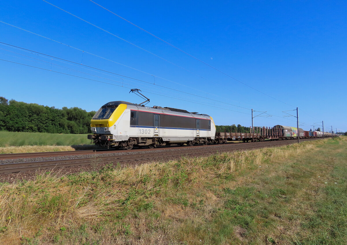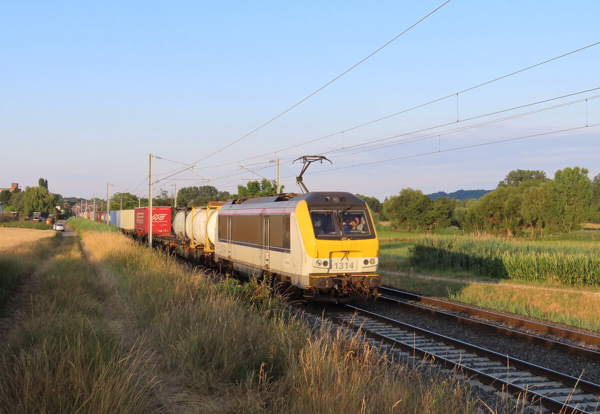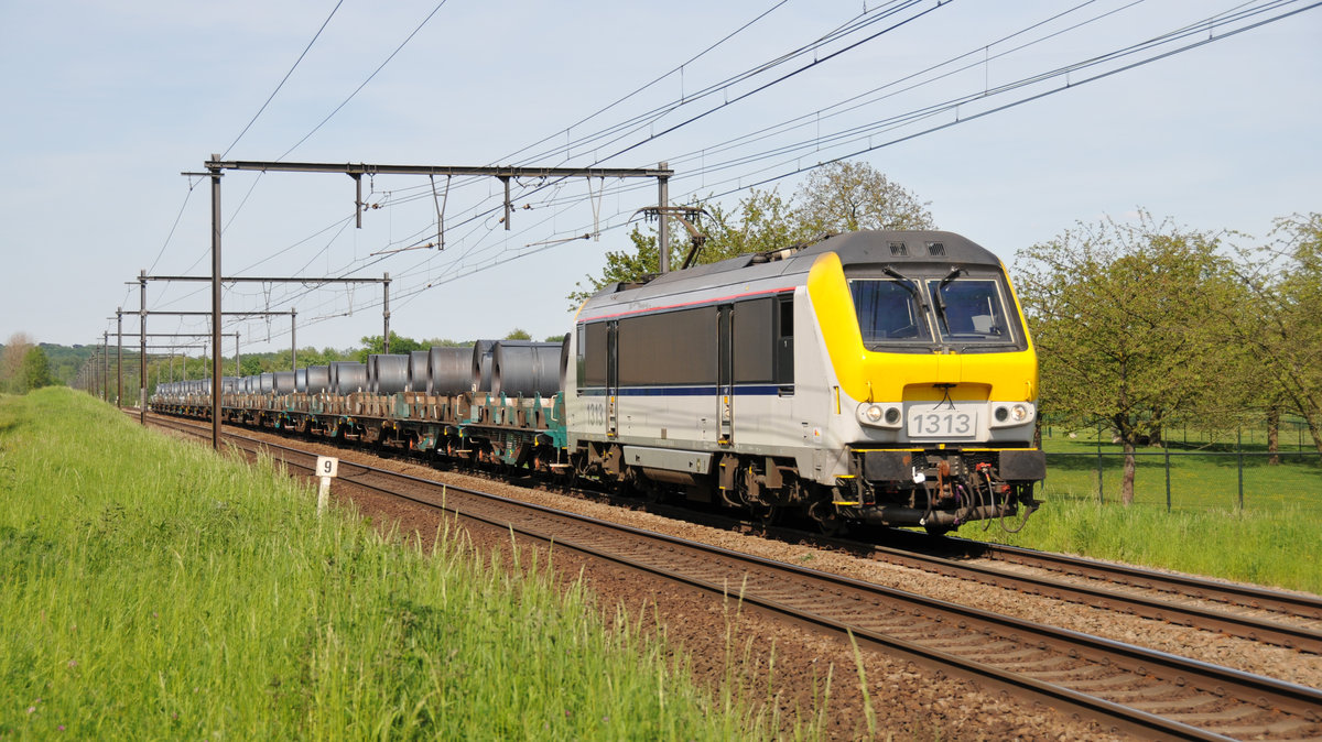 Nix für abergläubige Lokführer. Gleich zweimal prangt die 13 auf der Lokfront. SNCB-Lok 1313 mit einem Stahlplattenzug am 17/05/2017 kurz vor Tongeren.