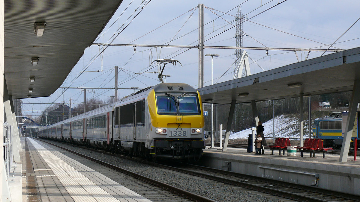 Mit dem ICa Eupen - Oostende am Haken erreicht HLE 1338 den Bahnhof Welkenraedt. Aufnahme vom 20/02/2010.