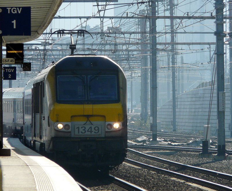 In Lüttich kommt E-Lok 1349 mit IC Richtung Brüssel-Oostende an, die wir zur Weiterfahrt nach Brüssel Nord benutzten. Dieser Zug befährt regelmäßig die Hochgeschwindigkeitsstrecke zwischen Lüttich und Brüssel. 17.02.08