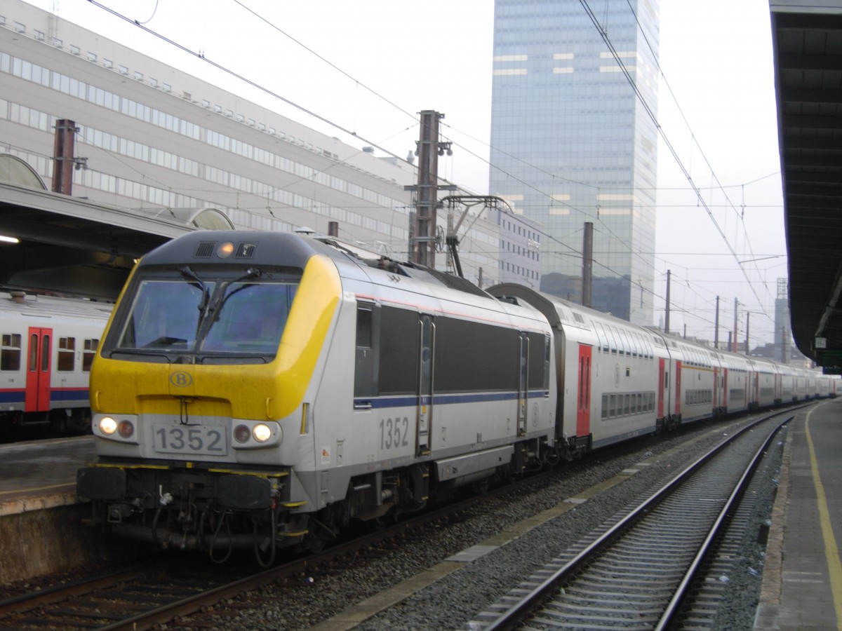 Die "13 52" steht am Morgen des 21.11.2014 um 08:44 Uhr abfahrbereit mit einem IC in Brüssel Midi.