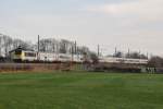 Belgiën Lok 1312 vom Lineas zieht einem Containerzug, in Franière 19/3/2019