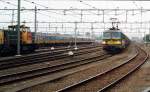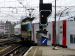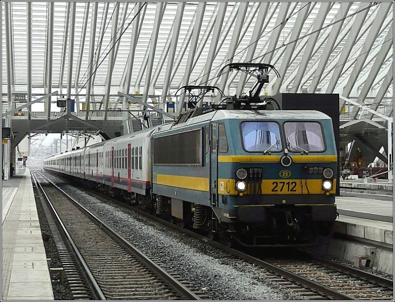 E-Lok 2712 mit M 4 Wagen stand am 12.09.08 als IR nach Quiévrain abfahrtbereit im Bahnhof Liège Guillemins, während E-Lok 2226 als Schublok am Ende des Zuges angehängt wurde. (Jeanny)