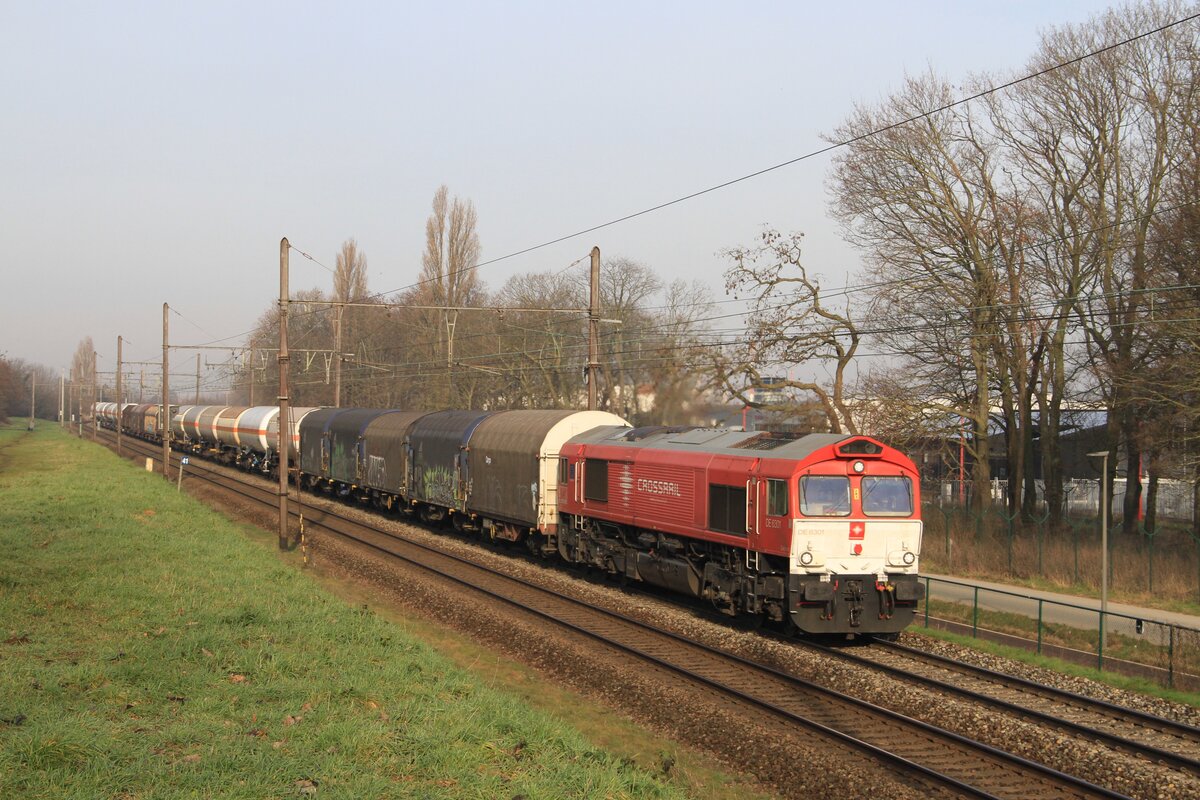 Belgiën Lok DE6301 von CRB mit einem Güterzug, in Mortsel 15/2/2023