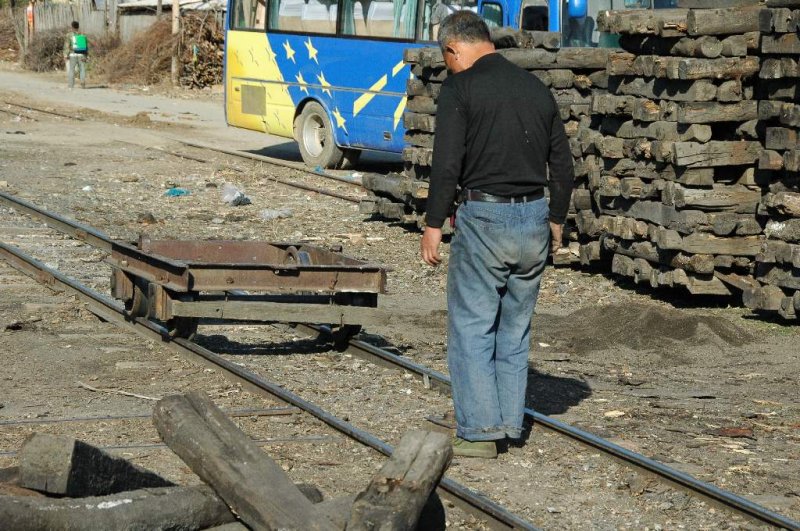 Die Draisine der Bahnmeisterei ist wieder in Tuoyaozi angekommen und wird weggestellt.