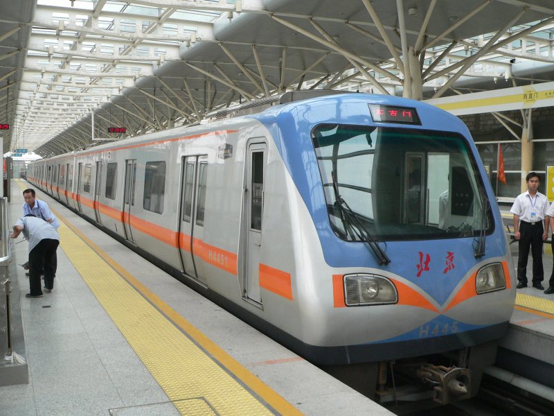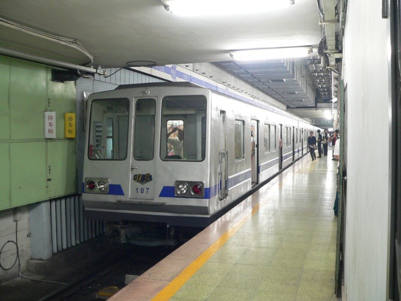 Pekinger U-Bahn - schnellstes innerstädtisches Verkehrsmittel, da auf den Straßen ständig starker Stau herrscht. Die Züge fahren tagsüber in dichtem Takt und sind überfüllt. Derzeit gibt es 3 U-Bahnlinien, bis zur Olympiade 2007 sollen aber weitere gebaut werden. 13.9.2007
