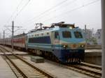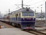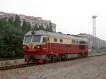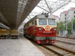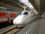 Metrozug 310 Shanghai Linie 3 (gelb) am 05.08.2007 in Shanghai Cao Xi Lu (nähe Fussballstadion) von Norden her kommend und weiterfahrend in Richtung Shanghai Südbahnhof.