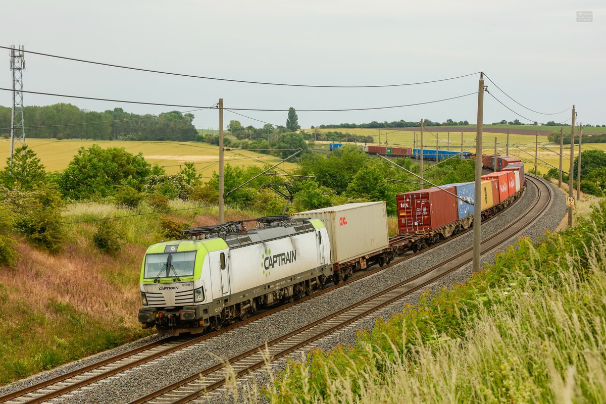 285 118 der Captrain schleppte am 12.10.25 einen Planenwagenzug durch Wittenberg-Labetz Richtung Falkenberg(E).