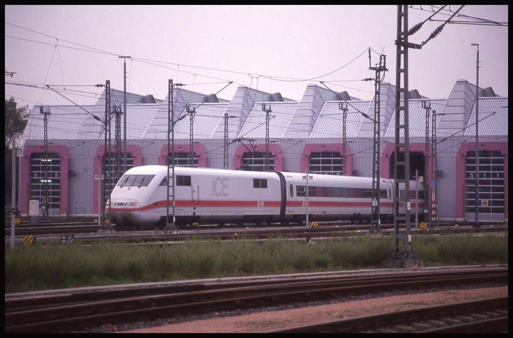 Ein ICE 1 fährt hier am 2.10.1993 in die Wartungshalle in Hamburg Eidelstedt.