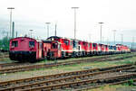 Mannheim Rbf, 05.04.2025: Zahlreiche Loks der Baureihen 152, 185 und 193 von DB Cargo stehen bereit für neue Aufgaben im Mannheimer Rbf. Einzig und allein eine ECR 186 sticht aus der Menge der verkehrsroten Lokomotiven heraus. Auch eine SBB 482 ist vorhanden, die schafft es allerdings bedeutend besser sich vor der Kamera zu verstecken.