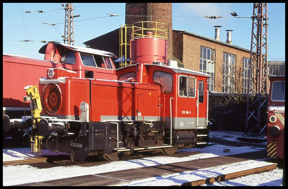 Am 3.2.1990 lag das BW Osnabrück Rbf in den "letzten Zügen" und diente nur noch wenigen Fahrzeugen als Abstellung. Der Messtriebwagen 727001 gab sich an diesem Tag dort noch ein Stelldichein.
