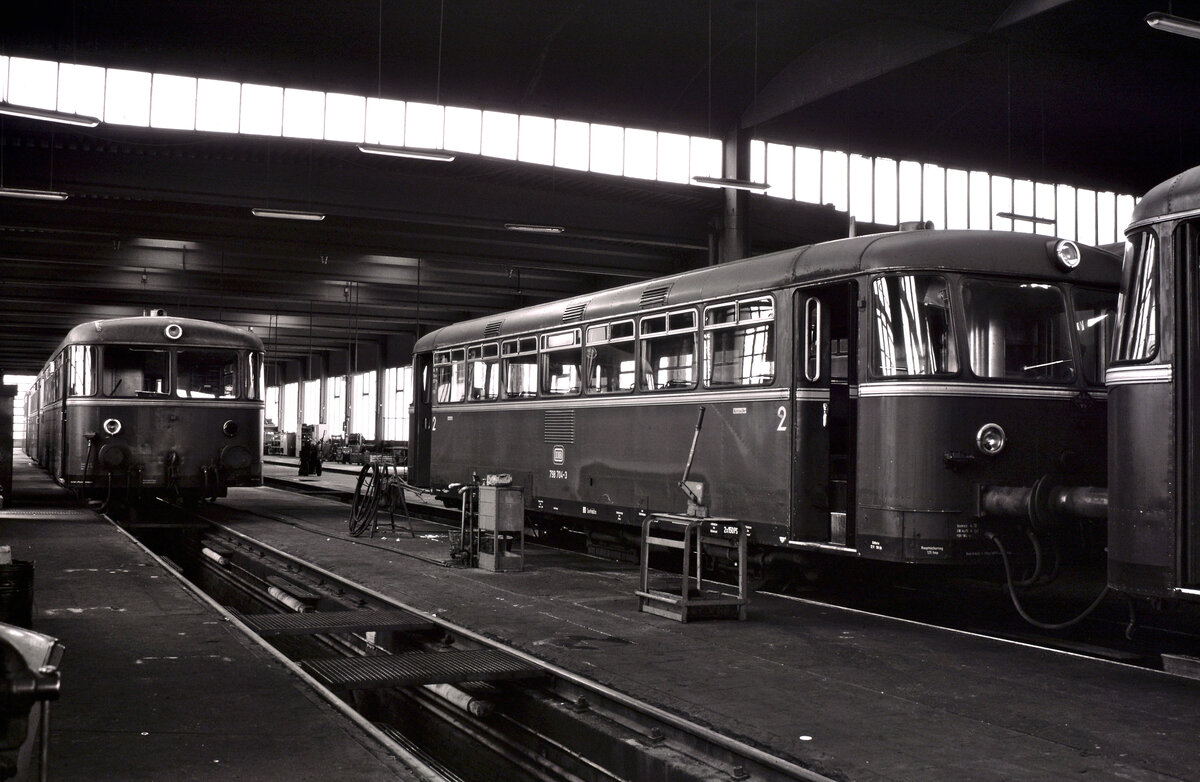 Blick über das Bahnbetriebswerk Trier. Zu sehen sind einige Reisezug- und Doppelstockwagen. 10.08.07