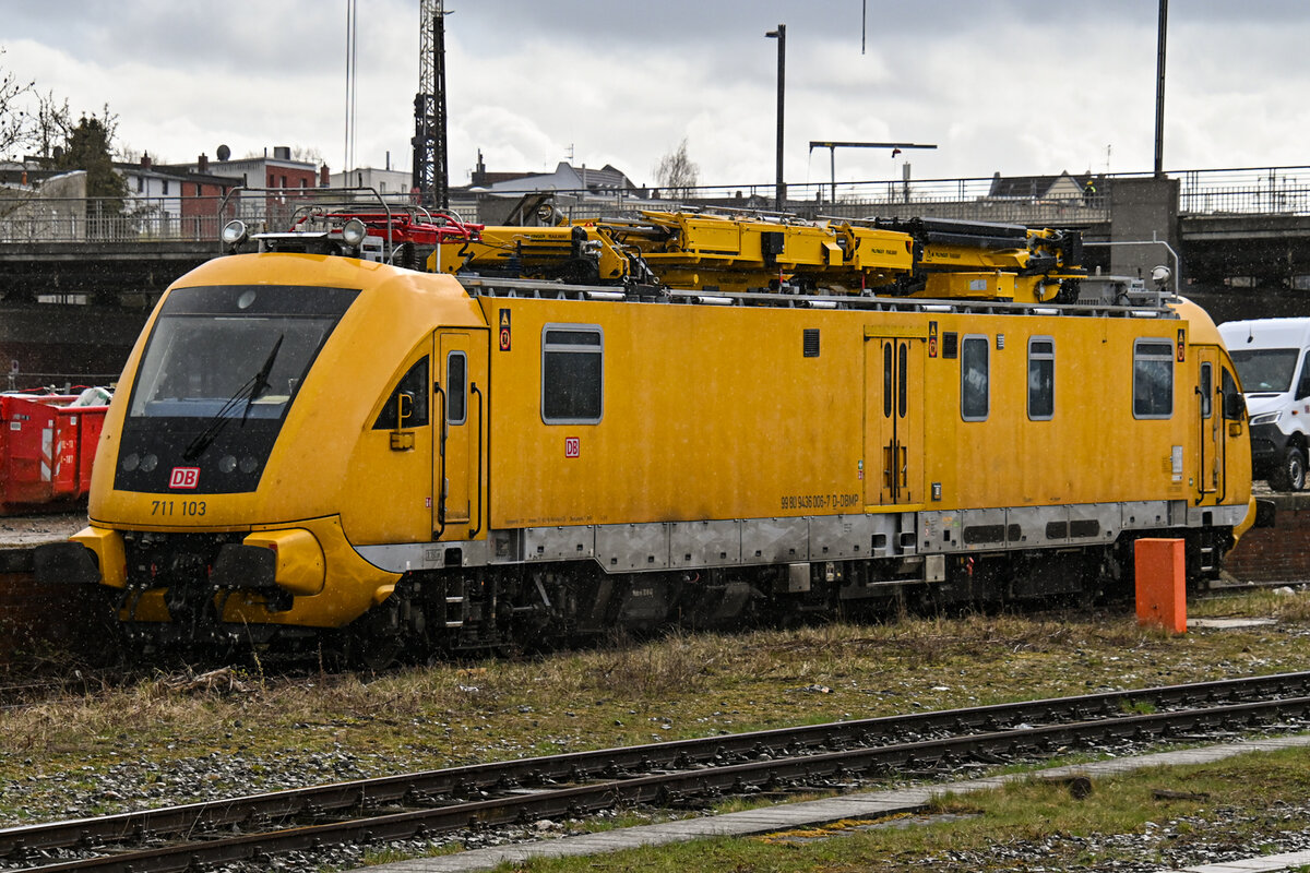 711 101-6 von DB Netz ist ein Instandhaltungsfahrzeug für Oberleitungsarbeiten passierte am 12.04.16 Thüngersheim und fuhr in Richtung Würzburg.