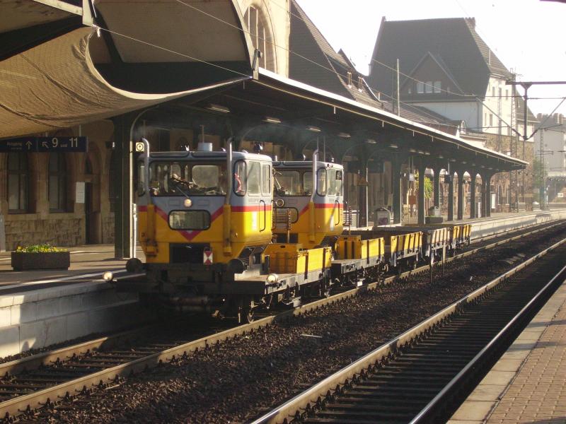 Northrail G 1206 (NVR-Nummer: 92 80 1276 037-9 D-NRAIL), aktueller Mieter mir unbekannt, mit dem Gleisbau-Maschinenzug der Berliner Fa. MGW Gleis- und Weichenbau-GmbH & Co. KG mit Material-, Förder- und Siloeinheit-Wagen (MFS 100) des Erzeuger Plasser & Theuer, KIROW Gleisbauschienenkran KRC 810 T + Schutzwagen und Plasser & Theurer RM 95-700 Bettungsreinigungsmaschine für Gleise und Weichen mit einer Aushubkette, einer Siebanlage und Beiwagen bei der Durchfahrt Bahnhof Flughafen Berlin Schönefeld. Lothar Stöckmann
