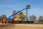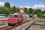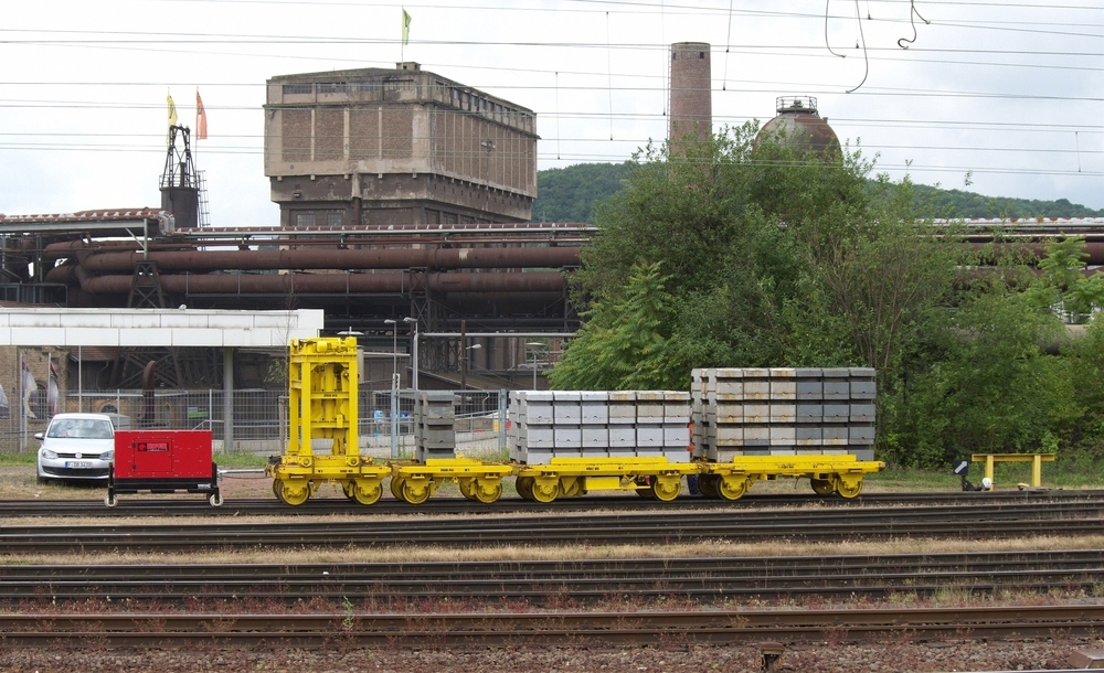 habe ich mich gefragt als ich am 15.06.2011 in Völklingen dieses Gefährt gesehen habe. Das kleine rote Wägelchen ist im weitesten Sinne eine Lok, die die gelben Wagen mit den Gewichten über die Gleise drückt oder zieht.